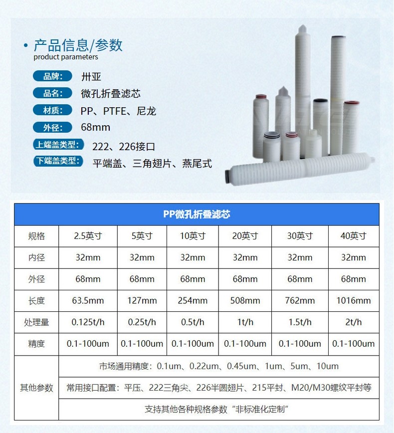 卅亞過濾20寸微孔折疊濾芯精密聚丙烯折疊濾芯 藥液酒廠折疊式