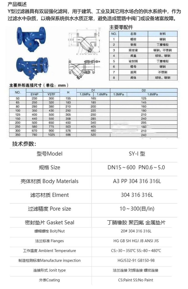 Y型過(guò)濾器法蘭球墨鑄鐵304不銹鋼